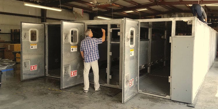 There were small observation windows at either end of the container, but none along the walls—just a few rectangular cut-outs connecting the adjacent sections. If you stood, you could see through them into the other compartments.