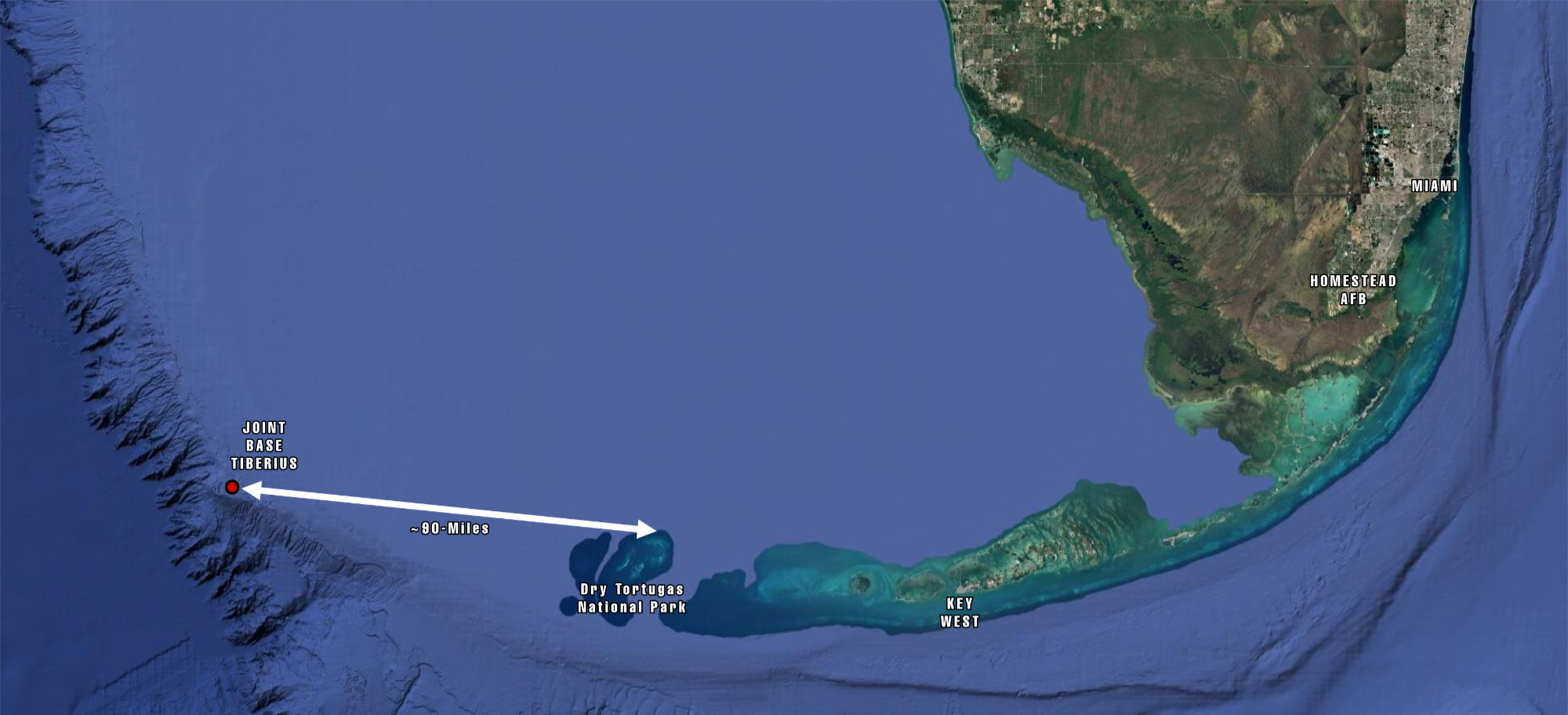 The official name is Joint Base Tiberius—designated a deep-sea military training facility operated jointly by the Navy, Air Force, and Space Force, with limited foreign presence.